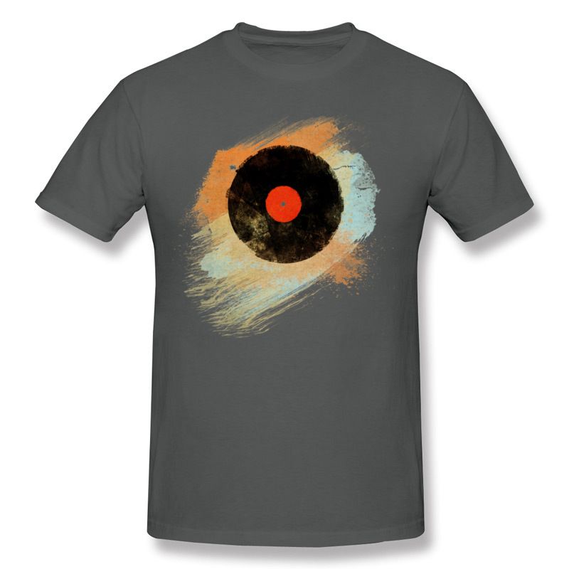 New Arrival Adult 100 Cotton Vinyl Records Retro Music Dj Vintage Paint Brushes Tee Shirt Adult Round Neck Dark Blue Short Sleeve T Shirts Cartoon T